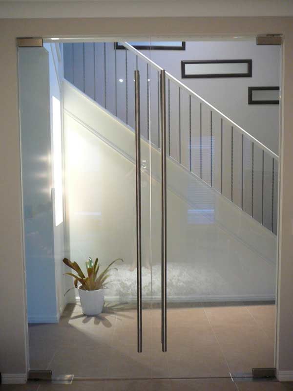 Противопожарная безрамная дверь со стеклом в частный дом в Дмитрове