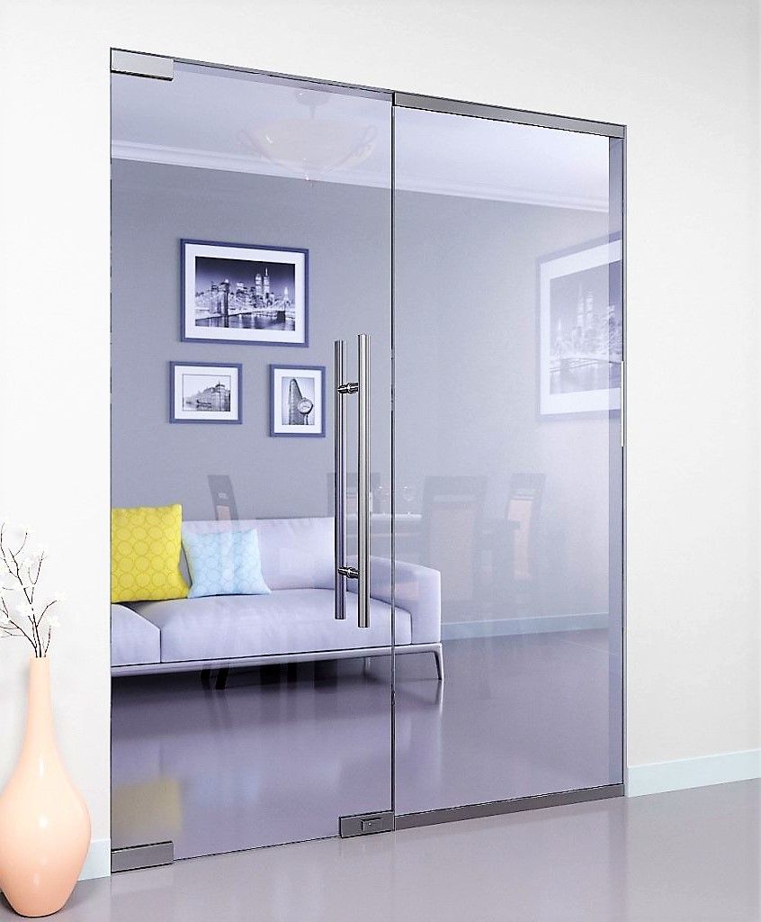 Противопожарная безрамная дверь со стеклом в гостиную в Дмитрове
